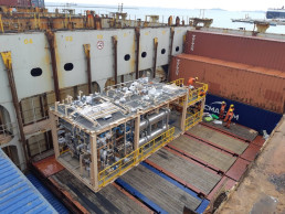 The GDU was designed to handle 55 MMSCFD of gas at a hefty 173 bar pressure. Tri Ethylene Glycol (TEG) solvent was used for dehydration. To reduce the site work and installation duration, Jord supplied the complete package as modular skids in just 51 weeks. Due to the transportation restrictions, the 8m tall contactor vessel was designed in two parts, with the lower section being transported within the module and the upper section bolted into place after being shipped separately.