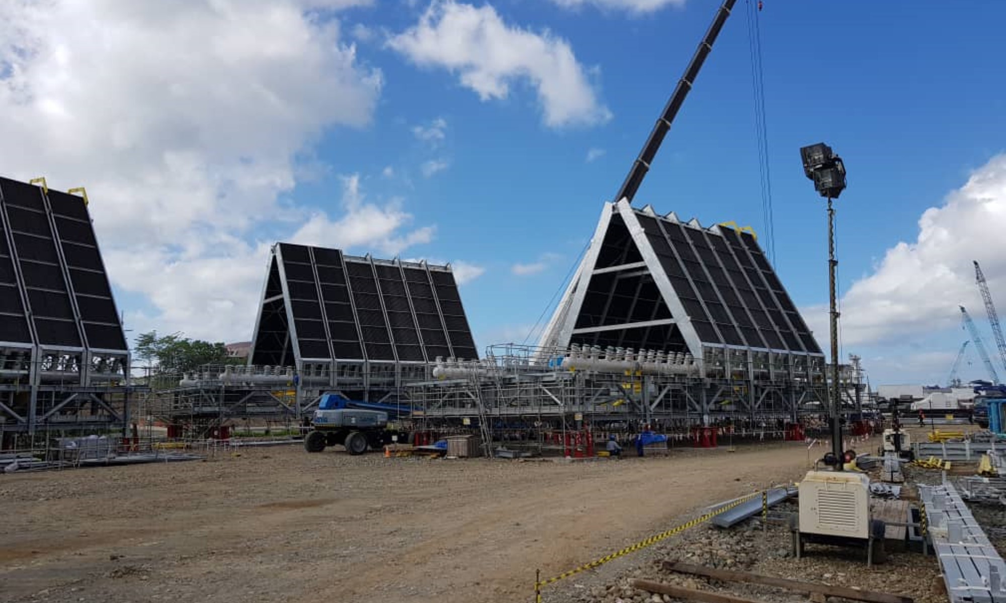 For the air-cooled condenser (“ACC”) supplied by Jord, the optimal mode of delivery was to barge the 2,500 tons of individual components to a yard located near to the site, assemble the ACC bundles and fan drive deck into modular sections and then shift these sections – 6 in total – the final few kilometres, for site erection onto Jord’s prior-delivered and assembled steel structure.
