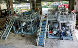 Two recent projects in the USA and Australia are cases in point. The first involved re-purposing an iso-pentane stream, produced as a by-product of an Australian LNG facility. Iso-pentance is typically either vented or flared. For this plant, Jord designed and supplied iso-pentane re-vapourisation modules that allowed this gas stream to be blended into a fuel source, used to fire an adjacent Combined Cycle Power Plant.