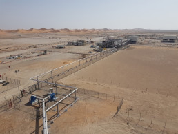 Located in a remote desert country of northwest Oman, the facility compresses natural gas from 40psig to 650psig. Three API-618 gas engine reciprocating compressors were selected for this service. Additional process systems included in the EPC contract were 2.2MW of power generation, fuel gas conditioning, instrument air compression and a 60 MMSCFD emergency flare system.