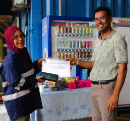 Then there are two Jord Malaysia staff. Plant Manager Sundara has the pleasure of presenting 10 year milestone awards to Finance Executive Zarizam Badur.