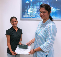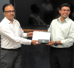 Singapore based Mouli Arani, our Technical Manager – Energy, being handed a certificate and gift by Gourinath.